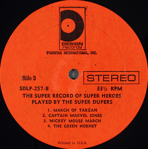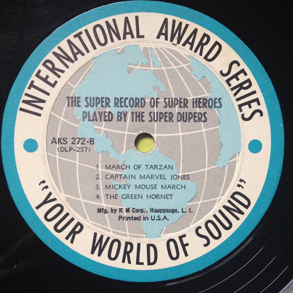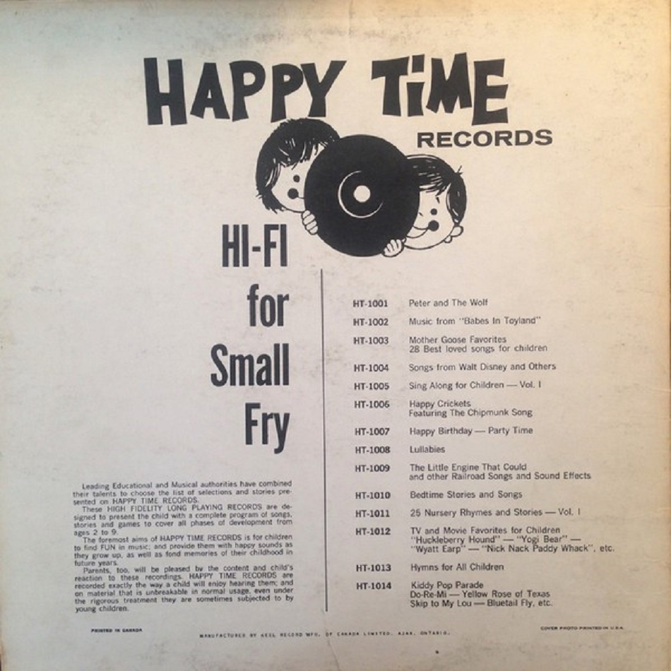 The Super Dupers: The back cover artwork does not coincide with the album but includes a list of “Happy Time Records” children’s LP’s. Launched in 1960’s Happy Time Records was a second children’s music label owned by Pickwick International, Inc. The label was used to release children’s LPs, predominantly recycled recordings originally released on “Cricket” it