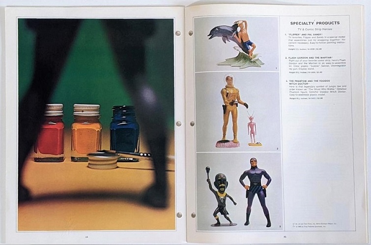 The internal page found within the catalog featuring the Phantom and the Voodoo Witch Doctor model kit can be seen below, plus the completed figurines colored as per catalog.
