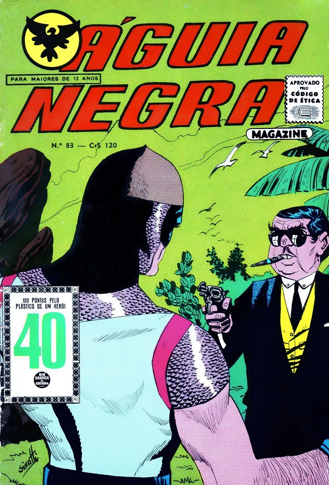 There were a total of 25 different comic book titles with select issues that contained the ’emblem’ on the cover. These are Fantasma, Aguia Negra, Anjo, Bang-Bang, Flash Gordon, Jeronimo, Robin Hood, Zeze, Bructu, Bufalo Bill, Capitao Marvel, Cavaleiro Fantasma, Don Chicote, Jack Marlin, Jim Das Selva, Pafuncio, Rocky Lane, Texas Kid, Campeoes Do Oeste, Cavalero Negro, Flecha Ligeira, Gugu, Mandrake, Nick Holmes and Recruta Zero.