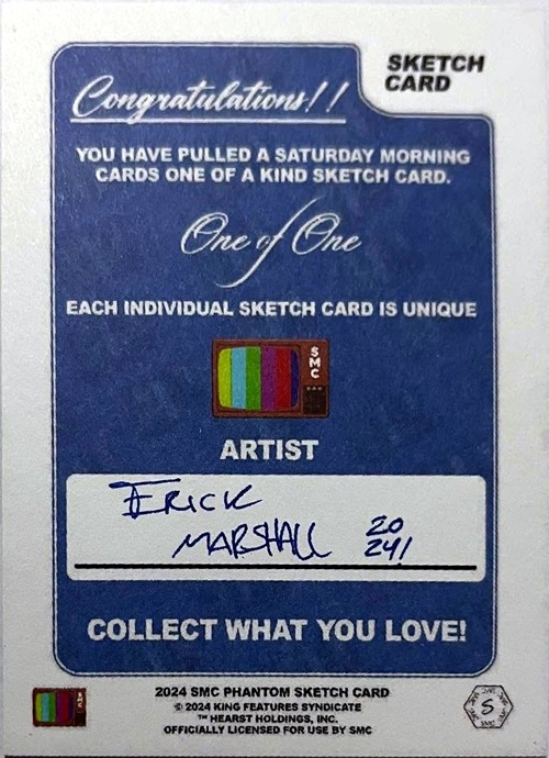 Saturday Morning Cards (SMC) is a USA-based collector card company that focuses on evoking a sense of nostalgia for classic Saturday mornings filled with cartoons, toys, and video games. The brand aims to provide a unique and in-demand collectible experience by combining retro artwork with modern card designs, appealing to both seasoned collectors and those looking to relive cherished childhood memories. They create limited edition collectible art in the form of trading cards, often featuring well-known pop-culture licenses.