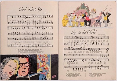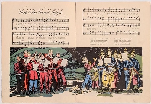 The song book contains 18 pages and measures 11” x 8”, published in full color. A total of 13 Christmas Carols are published in the song book, with art found within by various famous artists of that era, including Hal Foster, Alex Raymond, Chic Young, Frank Godwin and Milton Caniff, just to name a few.