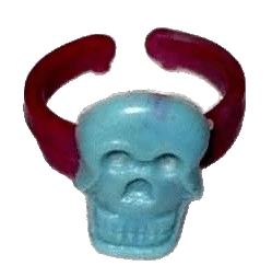 Made of plastic, we see a grey Skull attached to an open red colored band to easily fit most fingers. The ring is easily dated to 1980 due to the comic book it came attached to.
