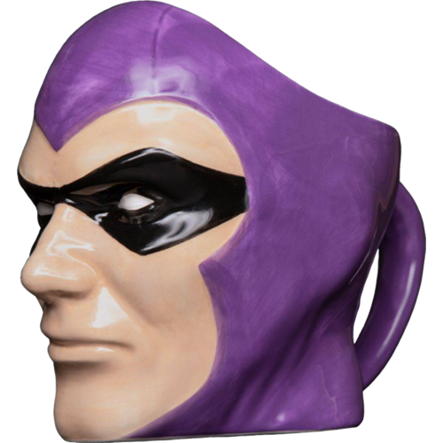 This highly detailed, sculpted mug of the Phantom meticulously captures the likeness of Billy Zane to a T. With purple covering most of the mug, his fierce expression protruding from the side, and his eyes were covered by a black mask. The mysteriousness behind the mask adds to the mug’s aesthetic.