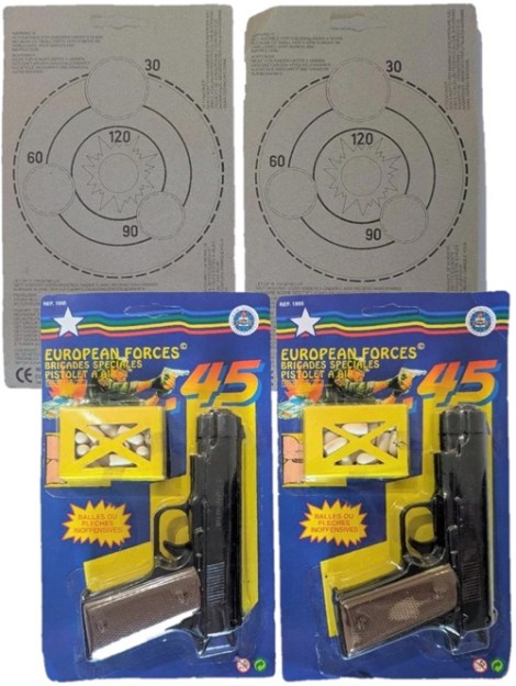 The boots are a combination of vinyl and stretch fabric, designed to replicate the Phantom’s iconic footwear. The set also includes two blister-packed plastic 45’s with cardboard targets on the rear, crafted from plastic with rubber firing caps. A plastic Skull and Good Mark ring sculpted after the “street players” rings is also included in the set (not seen below).