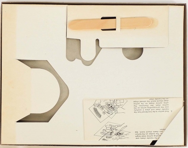 Found within the box once the lid is lifted off are 3 bank picture panels, 3 transfer sheets, a wooden stylus and an instruction sheet all housed in a custom made tray. The 3 blank picture panels are numbers 2763-A (containing a green background), 2763-B (containing a orange background) and 2763-C (containing a blue background), with the same corresponding numbers found on the 3 transfer sheets.