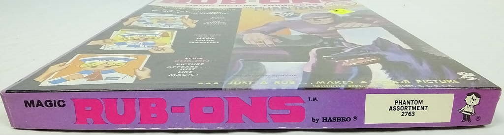 The Phantom Rub-Ons Magic Picture Transfers set was produced by Hassenfeld Bros, Inc in USA in 1964. The Phantom set was numbered 2763 by Hassenfeld Bros, Inc and is fully licensed by King Features Syndicate.