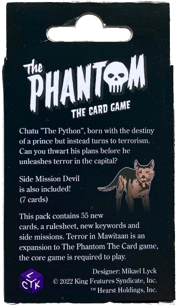 The Phantom The Card Game was produced by Games By Lyck in Sweden in 2021. Created by Mikael Lyck, the fully licensed Board Game was initially offered as a Kickstarter campaign in May, 2020 to not only gauge interest, but to also have the funding prior to going into production.