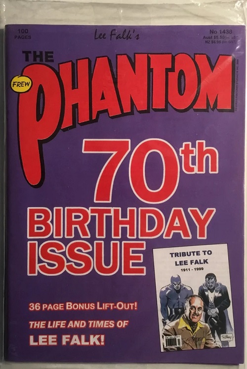 The Tribute to Lee Falk was published by Frew Publication in Australia in 2006. The supplement was a complimentary inclusion with Phantom comic book number 1438, inserted loose to the comic in a sealed plastic sleeve.