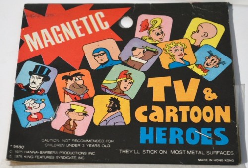The Phantom TV & Cartoon Heroes Magnet was produced by Al Nyman & Son, Inc in USA in 1975. The Magnet is made of vinyl plastic, commonly referred to as a ‘Puffy Magnet’, designed to be displayed on a metal object. A variety of comic book characters were featured in the series, characters licensed to both King Features Syndicate and Hanna-Barbera Productions.