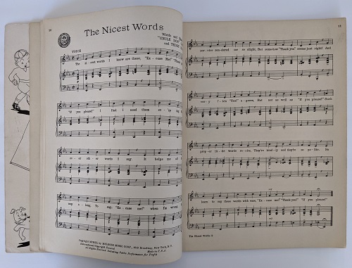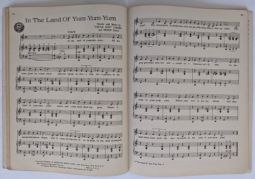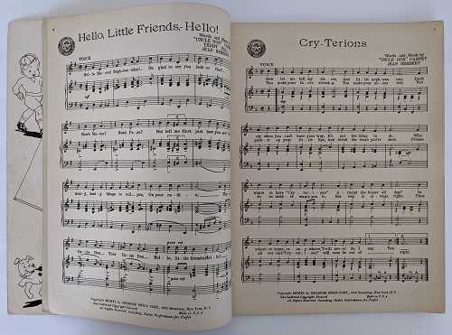 “Hello nephews, nieces too, Mothers and daddies, how are you? This is Uncle Don all set to go, with a meeting on the ra-di-o! We’ll start off with a little song, To learn the words will not take long; For they’re as easy as easy can be, so come on now and sing with me: Hibbidy-Gits has-ha ring boree, Sibonia Skividy, hi-lo-dee! Honi-ko-doke with an ali-ka-zon, Sing this song with your Uncle Don!