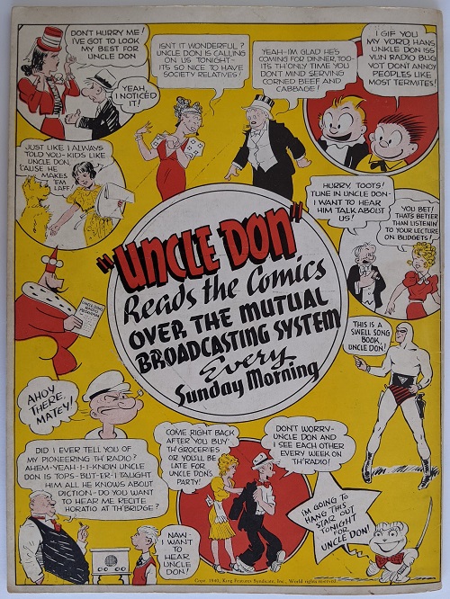 Uncle Don’s Song Game and Paint Book is believed to of been supported by King Features Syndicate. As a result, we see the Phantoms image appear on the outside back cover, amongst other King Features Syndicate comic book characters.