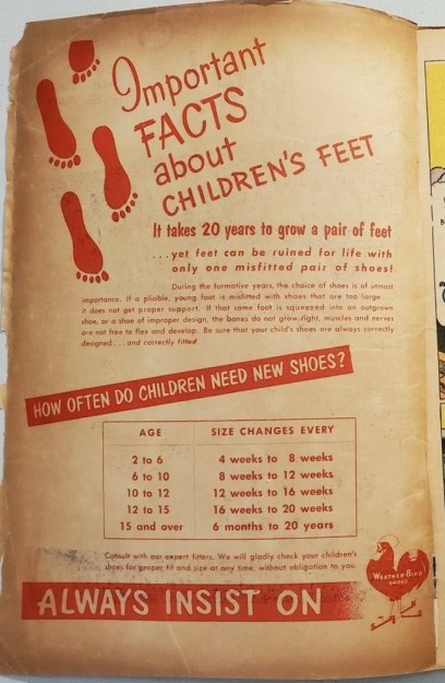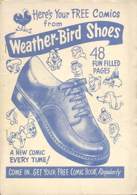 Weather-Bird Comics were distributed by the Peters Shoe Company, based in St. Louis, USA between 1951 and 1958. The comics were a free promotional give-away item wherever Weather-Bird Shoes were sold.