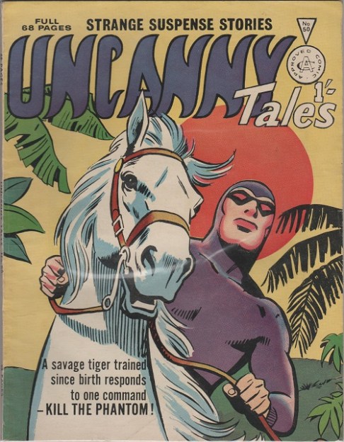 The Phantom appeared in a variety of the series produced by Alan Class, both within comic strips and on their cover. Material for these comics was sourced from Atlas, Marvel, ACG, Charlton, Archie and occasionally other American publishers, which also included the original cover art.