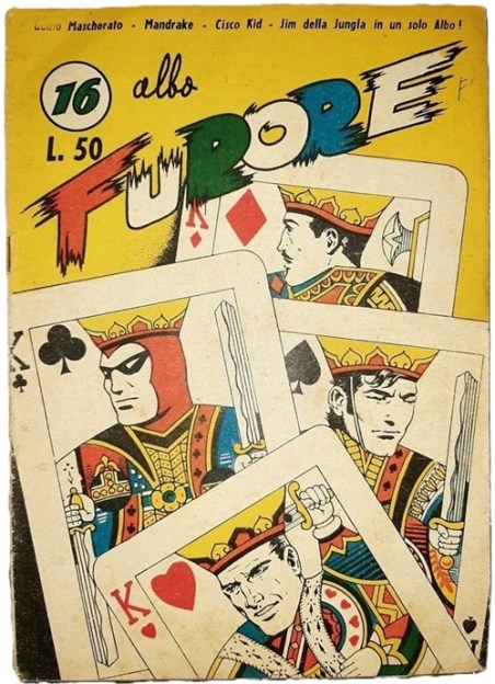 The Albo Furore comic book series was published by Edizioni Aurelia in Rome, Italy from January 1953 thru till February 1954. The series contains a total of 20 editions publishing a variety of comic strip stories per edition, featuring various characters including the Phantom, Mandrake the Magician, Johnny Hazard, Cisco Kid, The Lone Ranger, Pete the Tramp, Hubert and Jungle Jim.