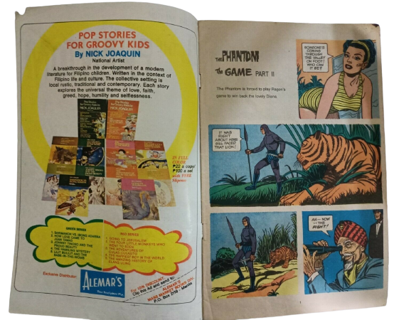 The Phantom comic series was published by Alemar’s Mass Market Books Division in Manila, Philippines in 1977. The series contains 4 comic books, all reprint stories found in the Gold Key Phantom comic book series published in the USA in the 1960s.