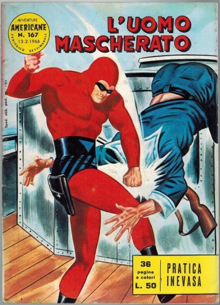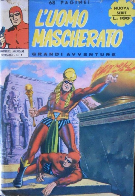 Avventure Americane Phantom comics (or L’Uomo Mascherato as he’s know in Italy) changed in appearance over the 18 years that they were published by Fratelli Spade, with 4 separate series released under this title. Each of the 4 series start with an edition number 1, with format and design changes clearly seen on both the front covers and within the comic. The title of Avventure Americane remained across all series.