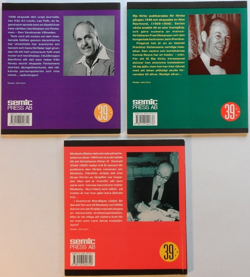 The back covers of each edition contain a small biography on the creators of each comic book characters, Lee Falk (the Phantom), Alex Raymond (Rip Kirby) and Peter O’Donnell (Modesty Blaise).