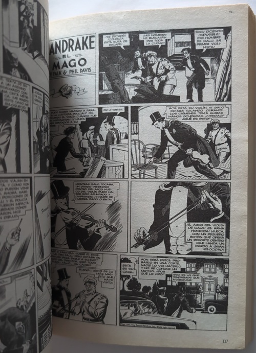 The 2oth and final edition in the series of Biblioteca Clarín de la Historieta was published in December 2003. It featured both the Phantom and Mandrake the Magician, with the Phantom published under his local title of El Fantasma, containing a softcover with 250 black and white pages measuring 15cm x 21cm with Spanish text. The front cover contains a collage of both the Phantom and Mandrake the Magician as illustration by Sy Barry and Phil Davis. The front and back cover can be seen below.