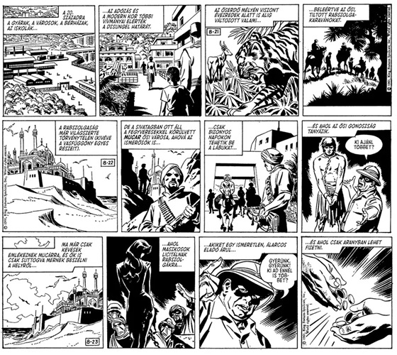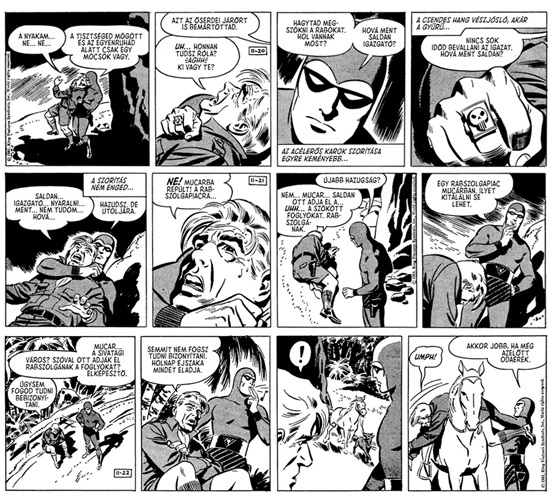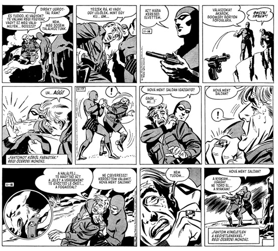 Fantom: A Napilapcsík Gyűjtemény contains 256 black and white pages measuring 21cm x 29.7cm in landscape format, printed in Hungarian text. The first 5 Daily newspaper stories to be illustrated by Sy Barry are published in the comic book, numbers 82 thru to 86.