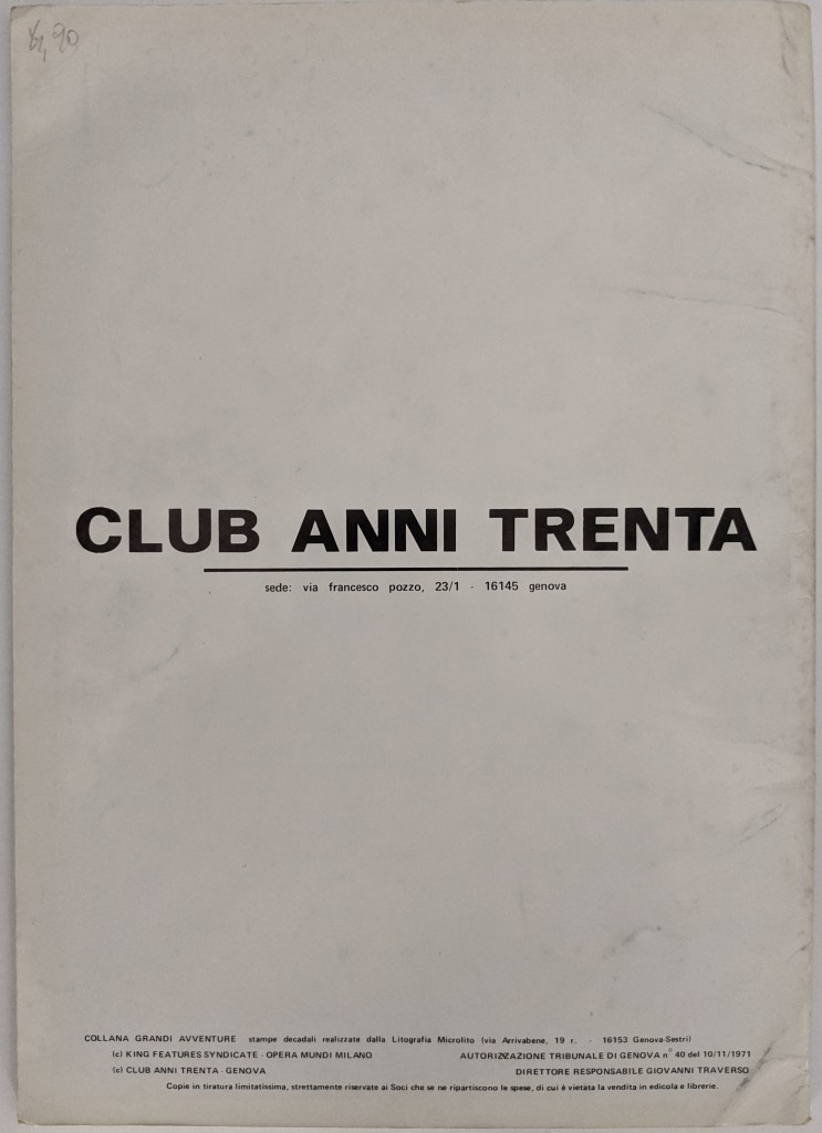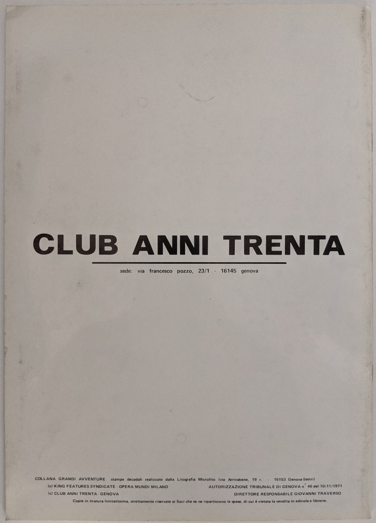 The Phantom is a series of comics that were printed by Club Anni Trenta (which translates to ‘Club of the Thirties’) in Genova, Italy in 1972.