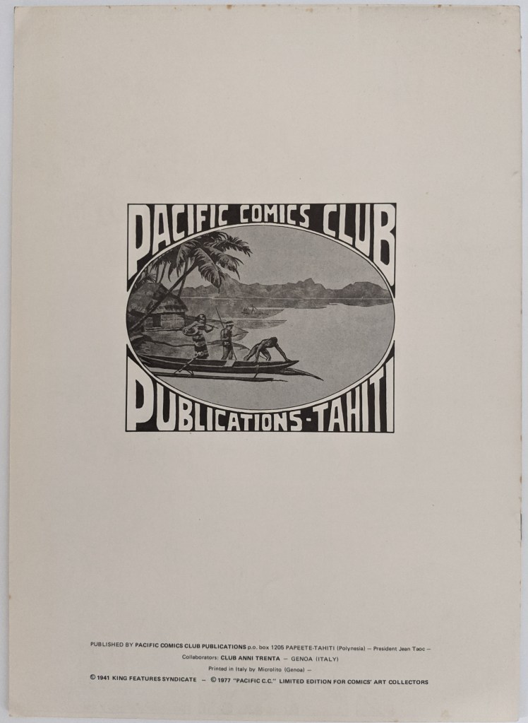 In 1977, the Pacific Comics Club Publications reprinted 3 of the above editions in USA. The reprints are extremely similar to the originals in size and look. Subtle differences can be seen on the front and back covers.
