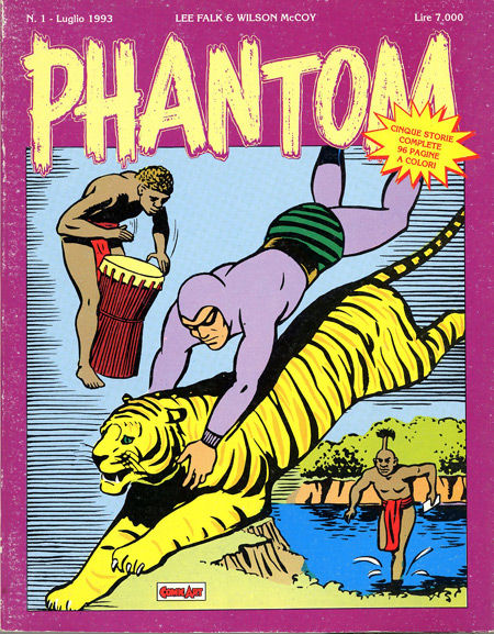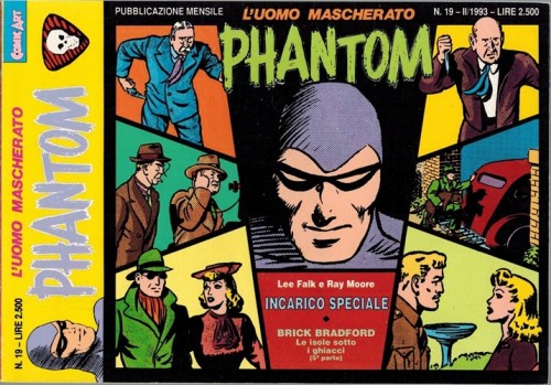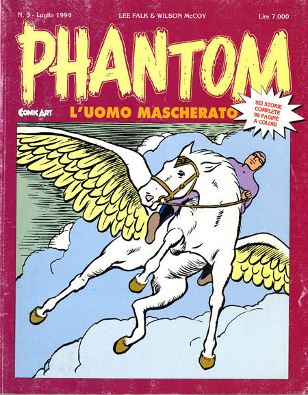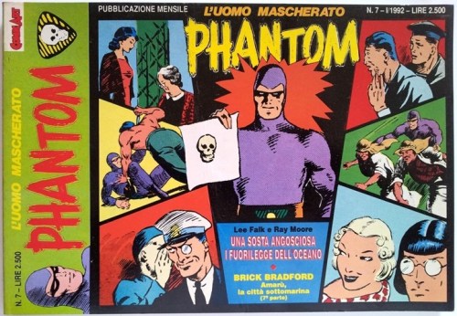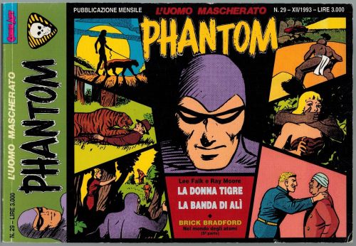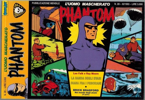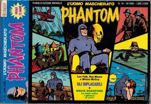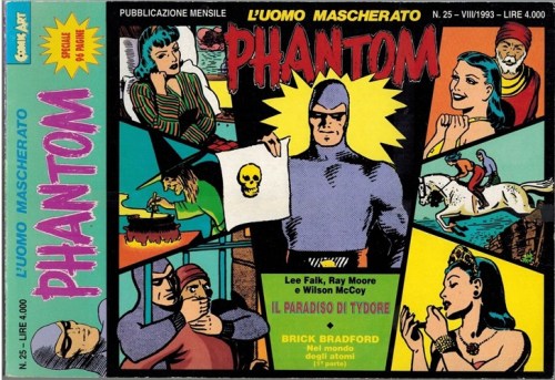 L’Uomo Mascherato comic books were published by Comic Art in Italy from 1991 thru till 1998. The series contains 55 comic books plus 6 special edition publications. The series published Phantom stories written by Lee Falk and illustrated by either Ray Moore or Wilson McCoy. Each edition also contains Brick Bradford comic strips.