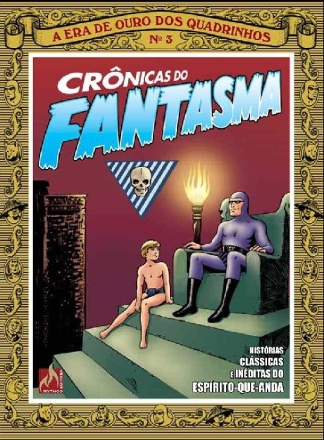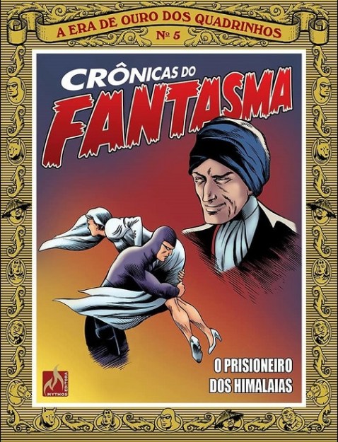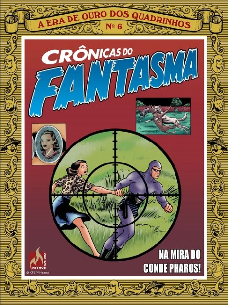 Crônicas do Fantasma comic books contain the Mythos Editora logo on the front cover, plus the edition number. In the top header section of the gold boarder, we also see ‘A Era De Quro Dos Quadrinhos’ which translates to ‘The Golden Age of Comics’. All 8 editions can be seen below.