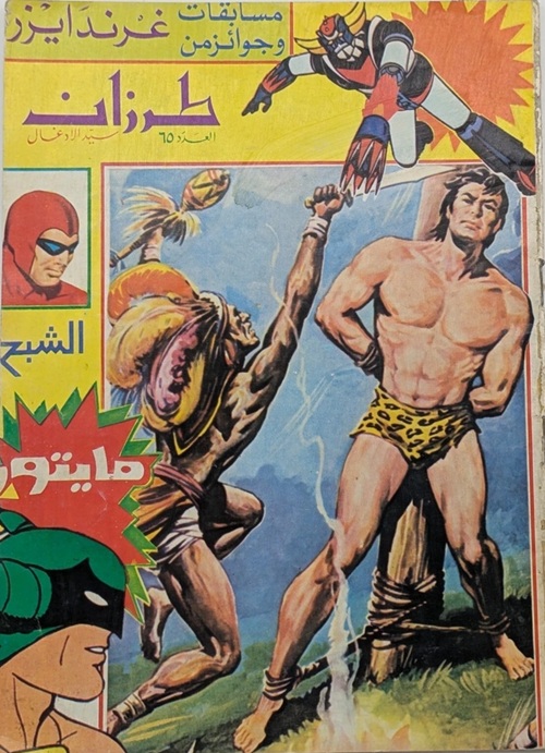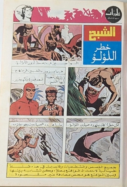 Tarzan Sied Aladghal was notable for including guest appearances from other comic strip heroes. The Phantom (or locally known as Al-Shabah) appeared as a back-up title within four specific editions, number 64, 65, 69, and 70 (which can be seen below) and appearing on three of these front covers, number 64, 65 and 70.