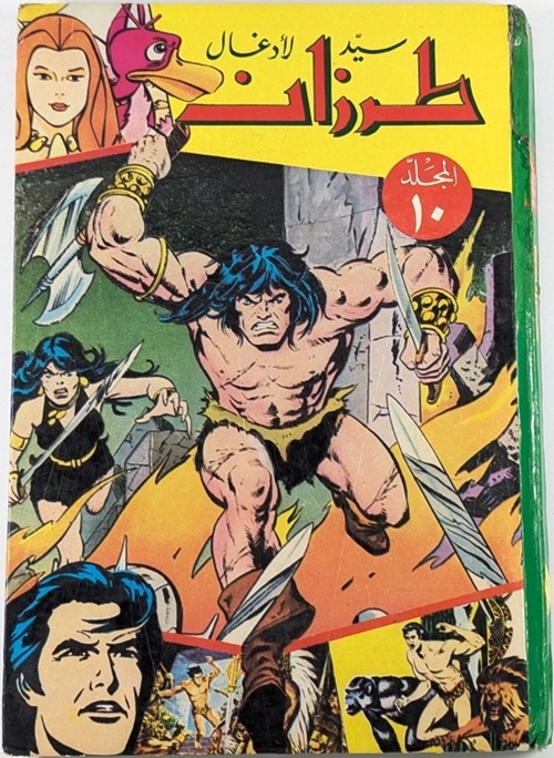 The Tarzan Sied Aladghal comic book series typically followed a consistent format that appealed to the broader adventure fanbase in Beirut and beyond, with each edition led with a Tarzan comic strip story, often illustrated by Italian masters such as Cambiotti, Belardinelli, or Lombardi. The front covers often featured striking, colorful collages or repurposed Italian artwork, tailored with Arabic calligraphy that became a signature of Dar Bisat Al-Rih’s aesthetic.