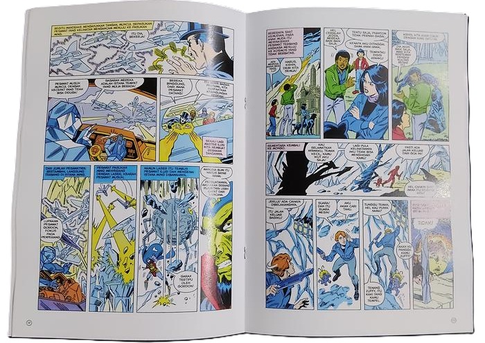 The Defenders of the Earth softcover comic books are issued with 32 pages presented in color measuring 17cm x 26cm. The comic strip stories contained within are printed in Indonesian, having been translated from their original English editions. They are published in small limited quantities for the local Indonesian market, unlicensed by King Features Syndicate.