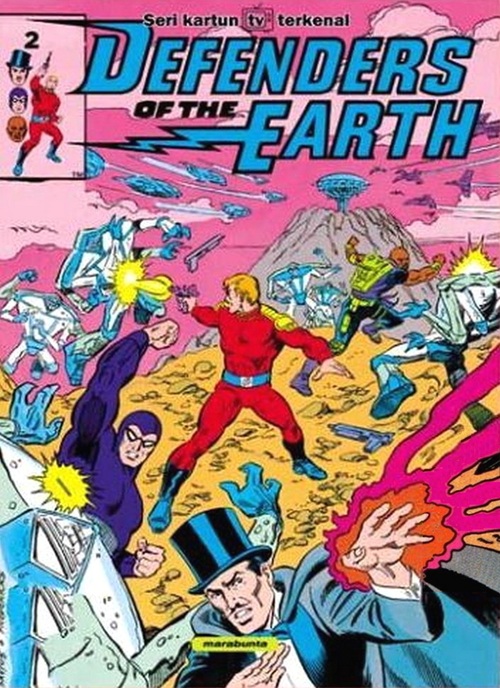 The Defenders of the Earth comics are published by Komik Marabunta in Indonesia in 2024. The two comic books found in the series reprints the first two editions of the series originally published by Marvel Comics under their Star Comics brand in the USA in 1987, with the main characters being Flash Gordon, The Phantom, Mandrake the Magician and Lothar who battle Ming the Merciless in a futuristic world.
