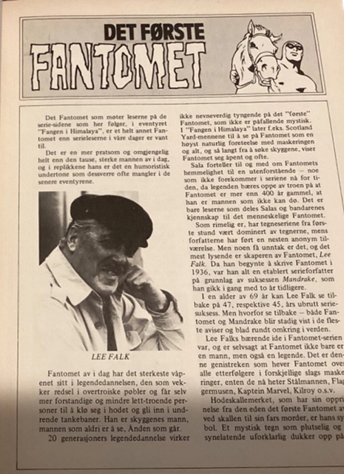 It also features an article about the history of the Phantom strip, written by Ebbe Zetterstad titled ‘Det Første Fantomet’.