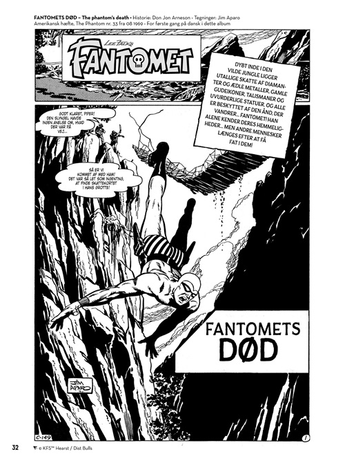The hardcover comic books contain approximately 128 black and white pages measuring 22cm x 29cm with Danish text. Several Phantom comic strip stories are published per edition, with the Phantom seen in a blue costume on all front covers as he’s known in Denmark.