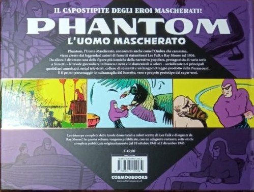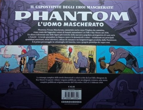L’Uomo Mascherato is a comic book series published by Editoriale Cosmo in Italy from the 24th of August 2017 thru till the 14th of November, 2019. Three hardcover album style books were published over this period publishing Sunday newspaper comic strip stories plus additional content including essays and historical insights.