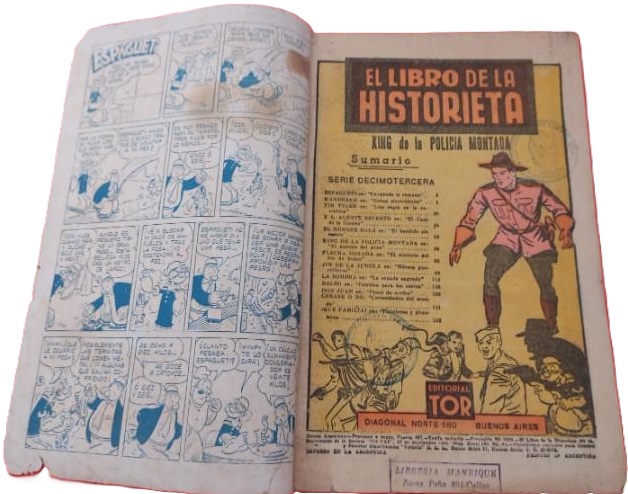 El Libro de la Historieta (which translates to The Comic Book) is a comic book series published by Editorial TOR in Buenos Aires, Argentina from 1950 thru till 1963. The series contains 35 editions, featuring a large number of comic book characters, with a variety of characters published per edition. The characters featured include the Phantom, Mandrake the Magician, Flash Gordon, Popeye, Superman, Buffalo Bill, Buz Sawyer, The Shadow, Brick Bradford, Steve Canyon, Johnny Hazard and many more.