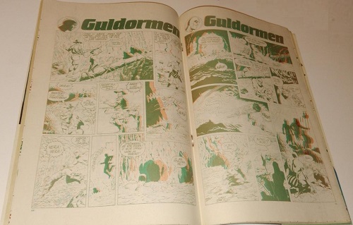The Fantomen 3D Comic Supplement is attached within the above edition, in the centerfold of the comic. The title of the 3D comic is ‘Guldormen’, containing the story ‘The Secret of the Golden Snake’, written by Idi Kharelli and Ed Redno, illustrated by Kari Leppänen. Below we see the 3D Comic Supplement within Fantomen comic book number 16, 1989.