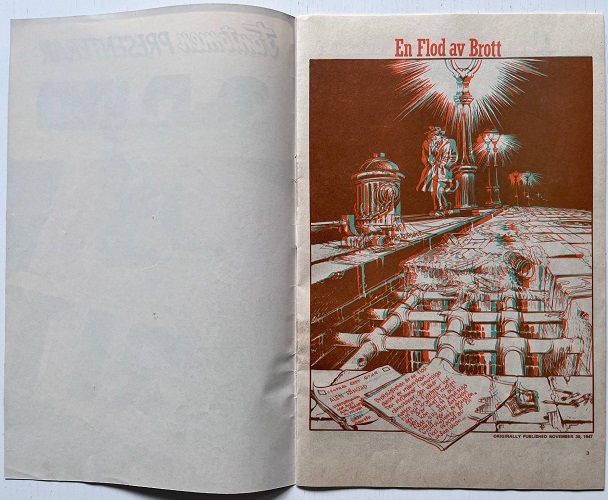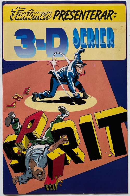 The 3D Comic Supplement is found within the above edition, in the centerfold of the comic. The 3D comic strip story found in the supplement features ‘The Spirit’ by Will Eisner. Fantomen wording is seen on the front cover, plus an advertisement for Fantomen comics appears on the rear of the supplement, a Phantom 3D comic strip story isn’t published.