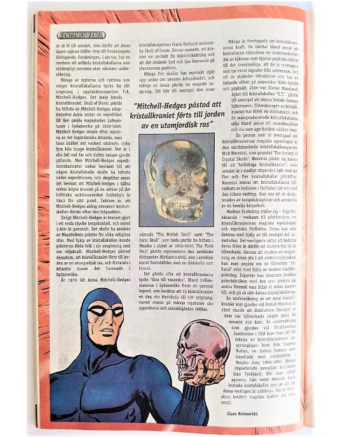We see a 2 page article in Fantomen comic book number 25, giving us information about Crystal Skulls.