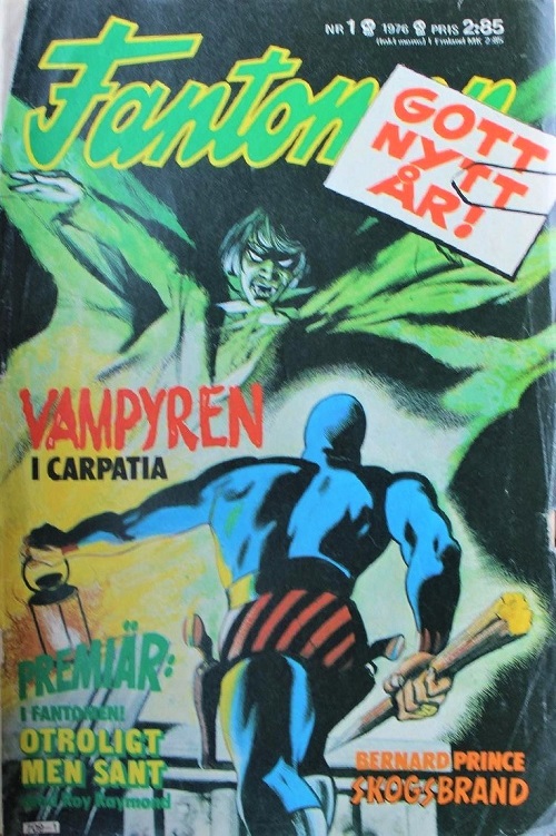 The ‘Trip to Romania’ competition was published in Fantomen comic book number 1 by Semic Press in Sweden in 1976. The competition to win a trip to Carpathia, Romania was advertised on a detachable poster (measuring 19.5” x 10” ) within the Fantomen comic. Below we see the comic front cover and the poster featuring the competition.