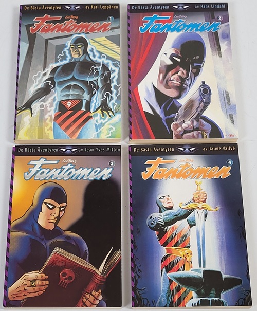 Fantomen De Bästa Äventyren (which translates to The Phantom The best Adventures) is a comic book series published by Egmont Kärnan in Sweden in 2004. The series contains 4 softcover comic books with each edition focusing on a Phantom comic strip artist. The artists featured are Kari Leppänen, Hans Lindahl, Jean-Yves Mitton and Jaime Vallvé.