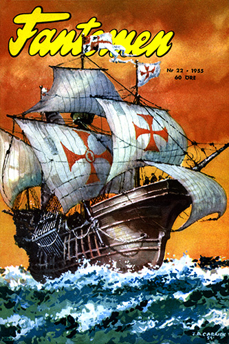 Fantomen was initially printed on a fortnightly basis, in full color. To save on costs, the comic book commenced being printed in black and white from 1955, starting with Fantomen edition number 22 (as seen on the right).
