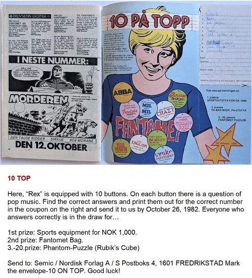 The Fantomet ‘Rex Pop-Music Contest’ was published in Fantomet comic book number 20 in Norway in 1982.