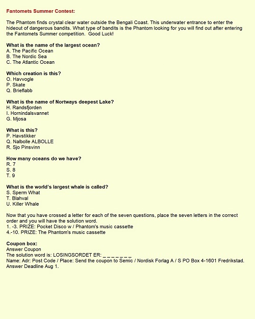 The Fantomet ‘Summer Contest’ was published in Fantomet comic book number 14 in Norway in 1985.
