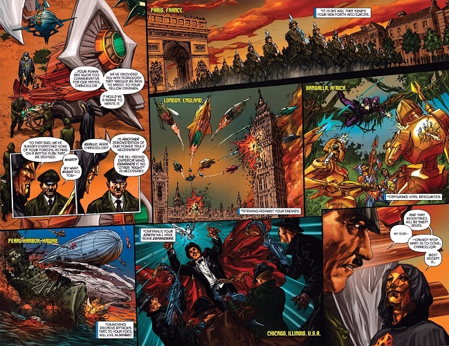 The year is 1934, and Earth is attacked by a powerful alien invasion force, led by the sinister, all-seeing Ming the Merciless. And this time, he does not fight alone. Allied with the sinister spymaster Klytus, his exotic and treacherous daughter, Princess Aura… and Adolf Hitler! Three valiant humans ― iconic hero Flash Gordon, the tough, determined Dale Arden, and the brilliant scientist Hans Zarkov ― are plucked from our world and rocketed into another universe of fearsome creatures, noble and savage alien species, ancient science, and titanic threats.