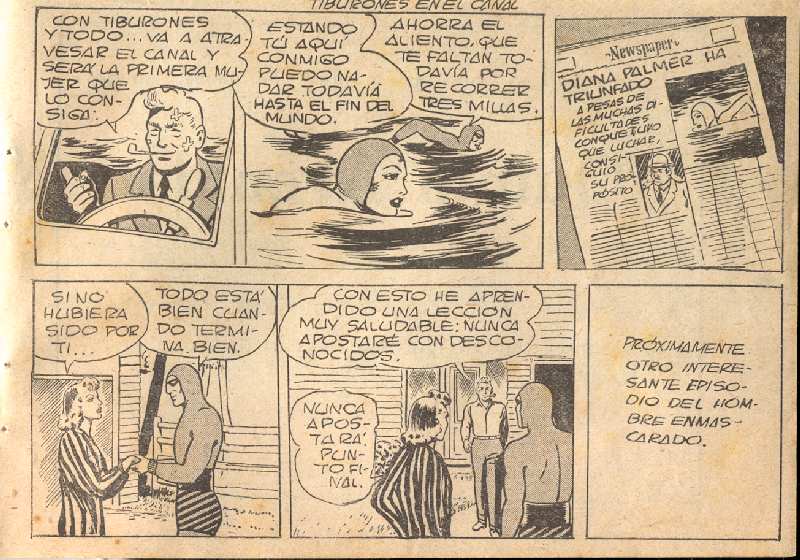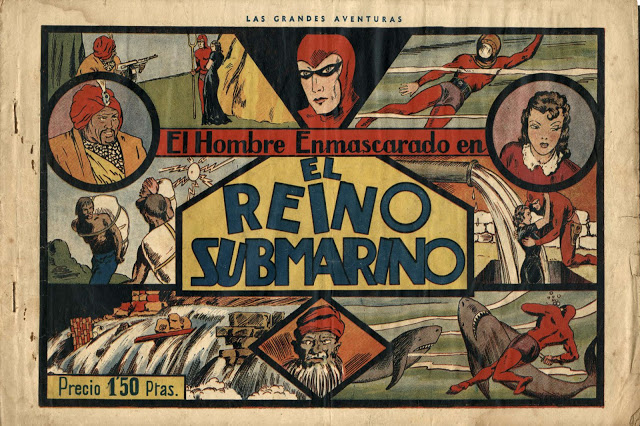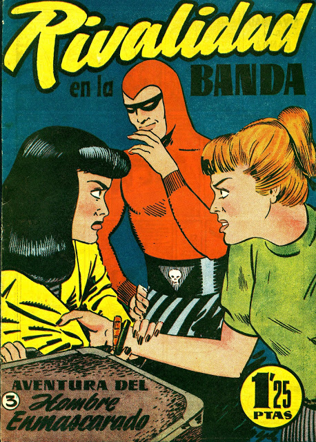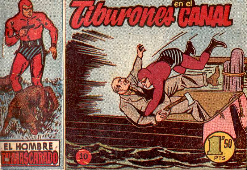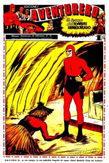 An Almanaque Aventurero edition was published by Hispano Americana in 1946 containing 74 color and black and white pages measuring 26cm x 18cm. the Phantom is found both within the comic book, plus on the front and back covers.