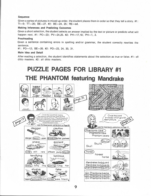 Incorporated within each issue of the 16 comic books were engaging educational puzzles and quizzes and a pictorial dictionary that centered on the story inside as well as the diverse cast of King Features characters showcased within that specific issue. The inside back cover of each edition contains the answers to these puzzles and quizzes.