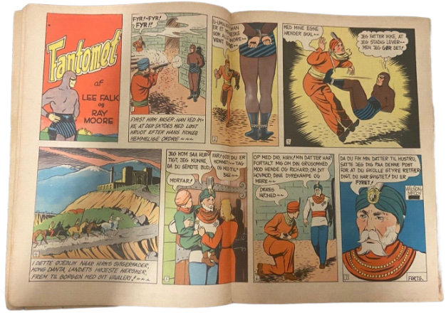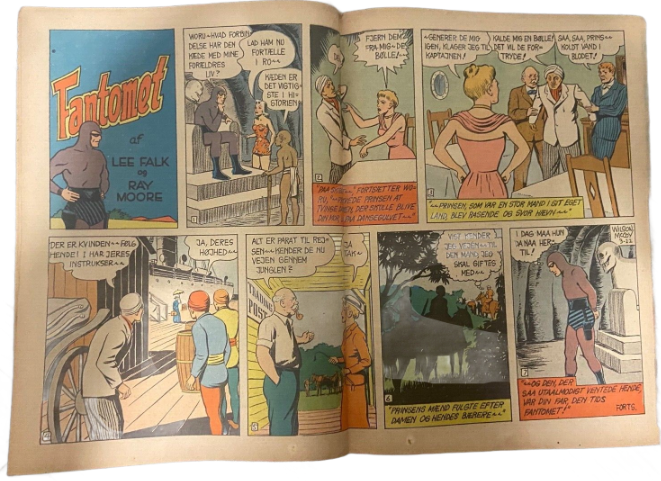 Kong Kylie also featured the Phantom, appearing in all editions across 2 pages, with Sunday comic strip stories published in full color under the Phantoms Danish title of Fantomet.