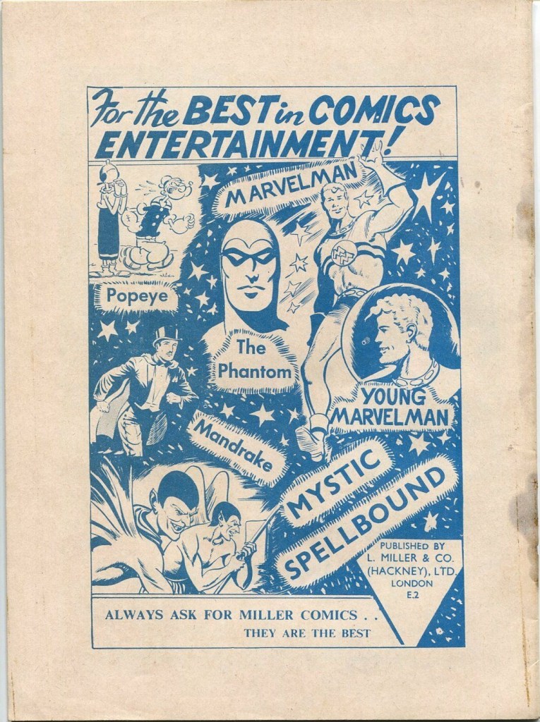 Published in 1963 by L.Miller & Co. (Hackney) Ltd. London, ‘Mystic’ comic number 40 contains an advertisement on the back cover with the Phantom making an appearance.