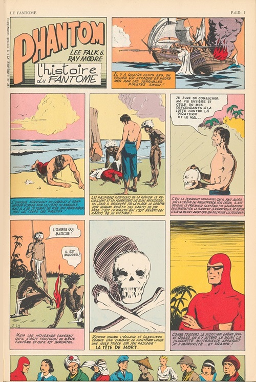 L´Age D´Ors Le Fantome are softcover comic books containing from 92 to 150 color pages measuring 24.5cm x 36cm. They contain Sunday newspaper comic strip stories written by Lee Falk and illustrated by either Ray Moore or Wilson McCoy, translated from English to French. The front and back covers can be seen below.