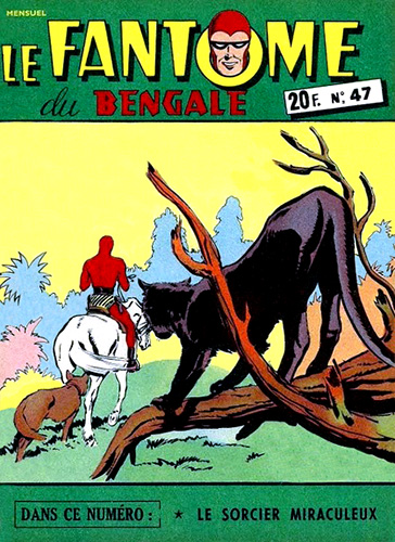 Le Fantôme du Bengale (which translates to The Phantom of Bengal) is a comic book series published by Editions SAGE (Société Anonyme Générale d’Édition) in Paris, France from 1949 thru till 1953. The series contains 50 editions published on a monthly basis exclusively featuring the Phantom. The series contains daily comic strip stories first appearing in USA newspapers, written by Lee Falk and illustrated by either Ray Moore or Wilson McCoy.